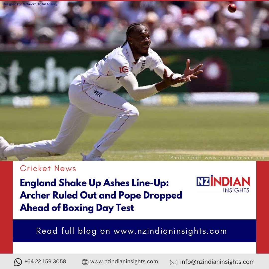 England’s Ashes campaign has taken another hit ahead of the Boxing Day Test, with fast bowler Jofra Archer ruled out of the remainder of the series due to injury. In a separate but equally significant move, England selectors have left Ollie Pope out of the playing XI, making changes as they look to halt Australia’s dominance.