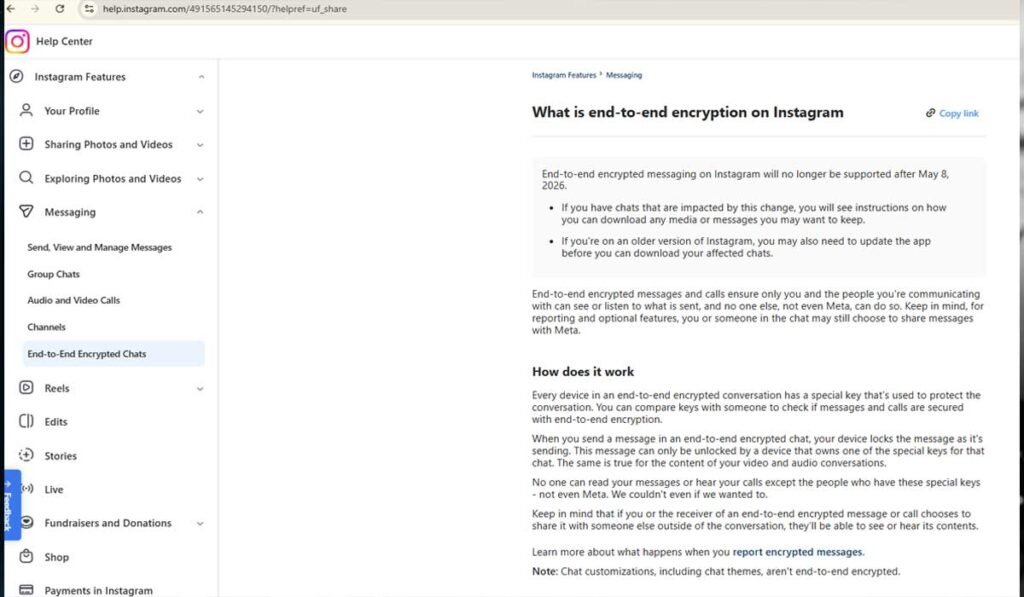 - End-to-end encrypted messaging on Instagram will no longer be supported after May 8, 2026.