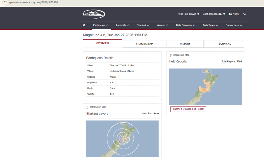The quake struck in the afternoon and was centred north-west of Levin at a shallow depth. Because of its relatively shallow location, the shaking was felt across a wide area, including parts of Manawatū-Whanganui, Horowhenua, Wellington, and surrounding regions.